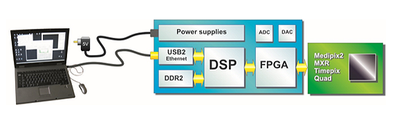 • Changeable Adapter board for Medipix which allows using more than one type of Medipix chipboards
