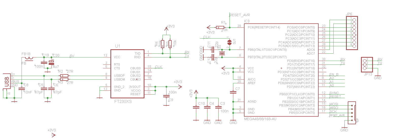 Zapojení AVR s FTDI