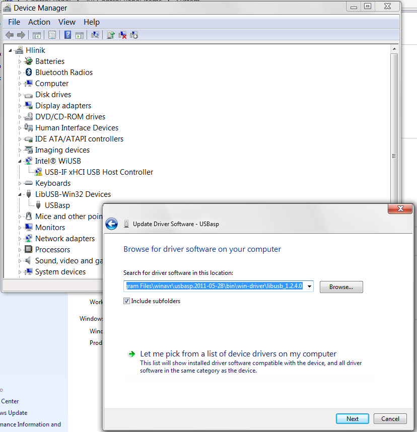 Nastav drivery (jsou v adresari stazeneho usbasp … bin\win-driver\libusb1.2.4.0