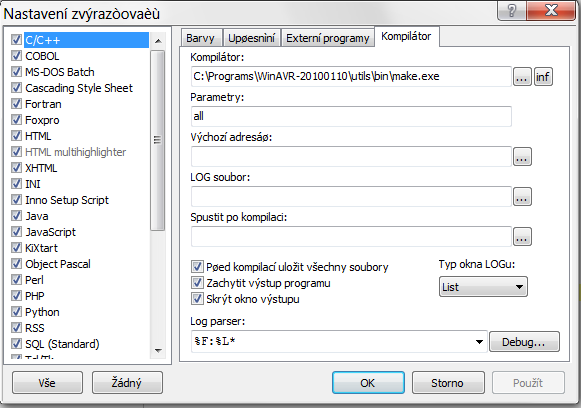 Nastavit kompilator: