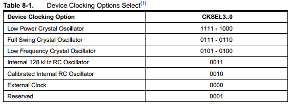 | Low byte: | 1110 0111 | E7 vypne preddelicku, nastavi ext krystal |